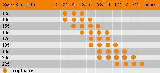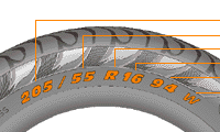 Szélesség Az abroncs magassága a szélesség százalékában Radiál Perem átméro Súly index Sebesség index |